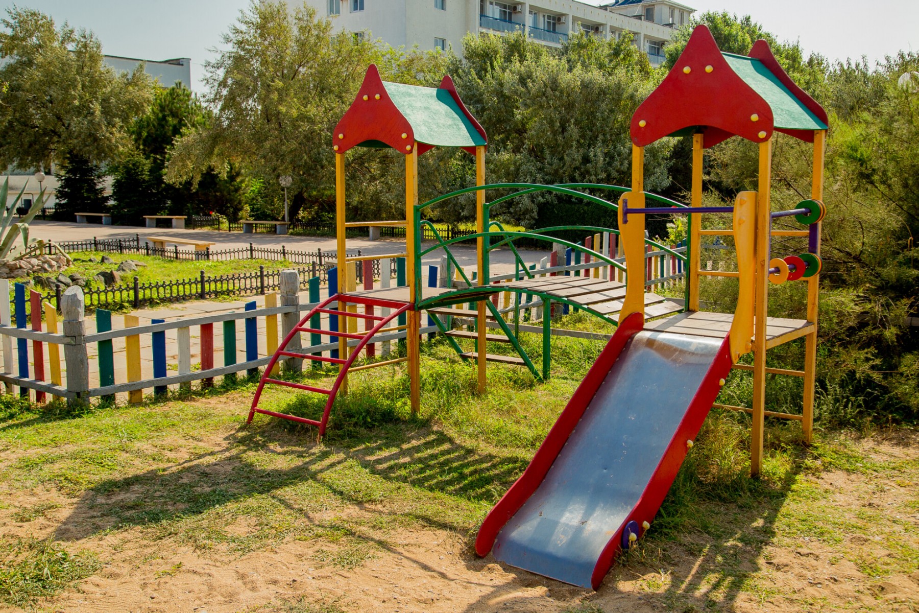 Территория санатория "Северное сияние" расположилась в курортном пригороде города Саки – между соленым Сакским озером и побережьем Черного моря.